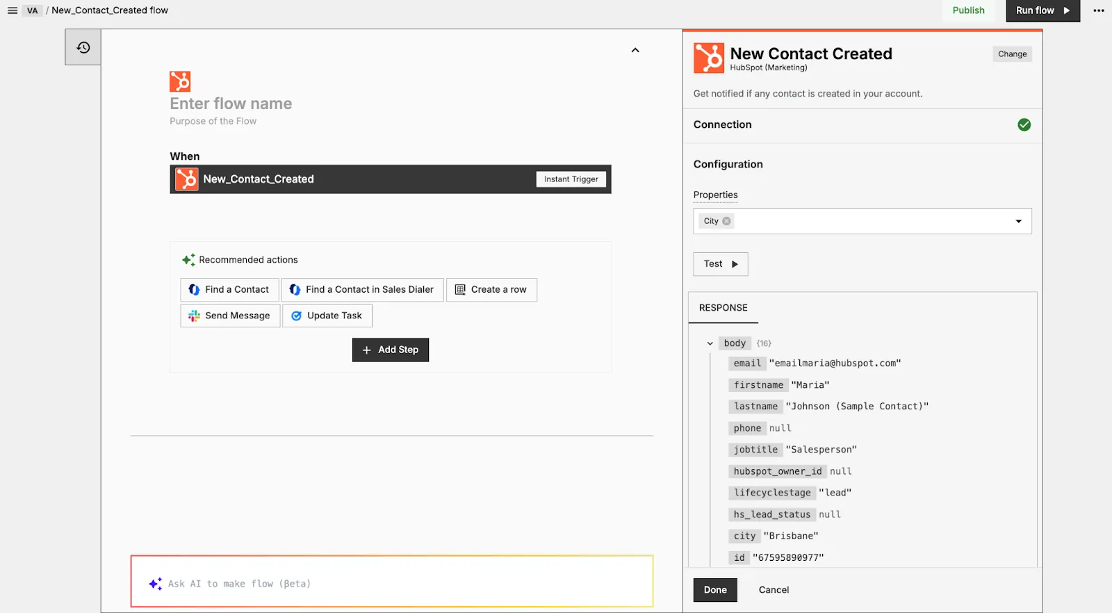 - Set Up the Workflow: Create a new workflow in HubSpot. Choose the trigger as "Contact is created" and set the conditions for the workflow to start when a new contact is added to the system.