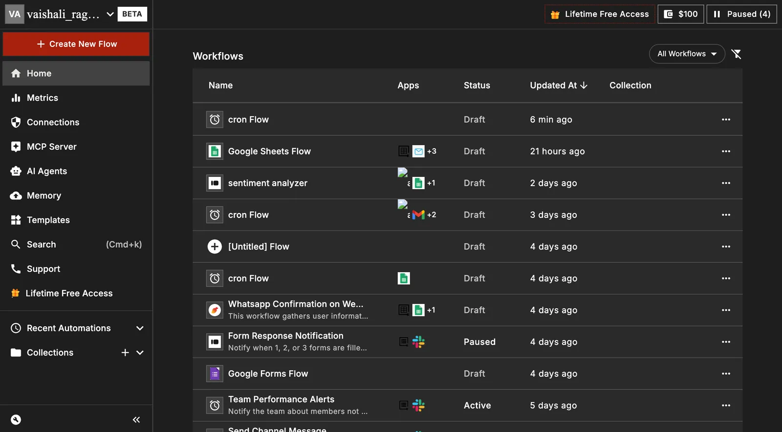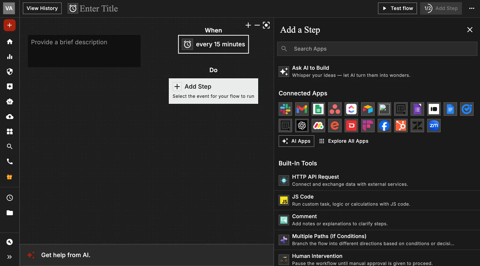 4. After that, you'll be redirected to the viaSocket WorkSpace. You can start creating your first workflow from there.
