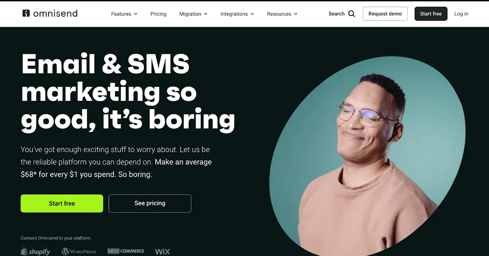 E-commerce email & SMS marketing | Free plan; Paid starts at $16/month | Omnichannel marketing, automation, segmentation | |