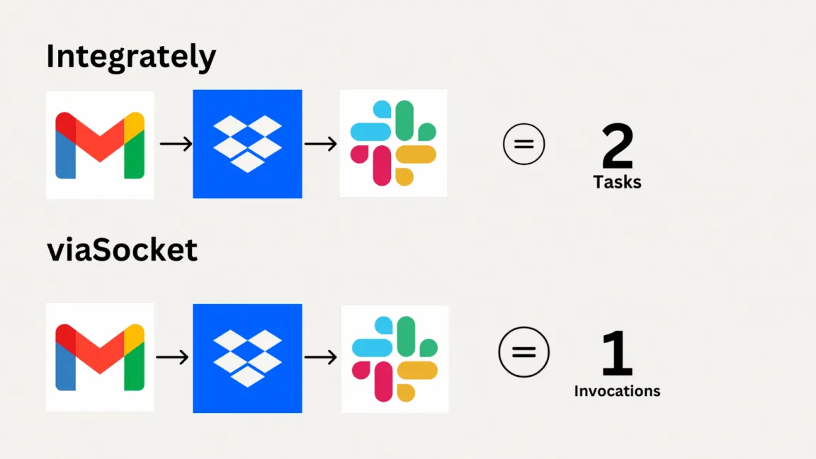 For example, if you have a workflow in Integrately that saves any attachments from the email to a specified folder in Dropbox for each new Email received on Gmail and notifies you about it on Slack, it's counted as two tasks.