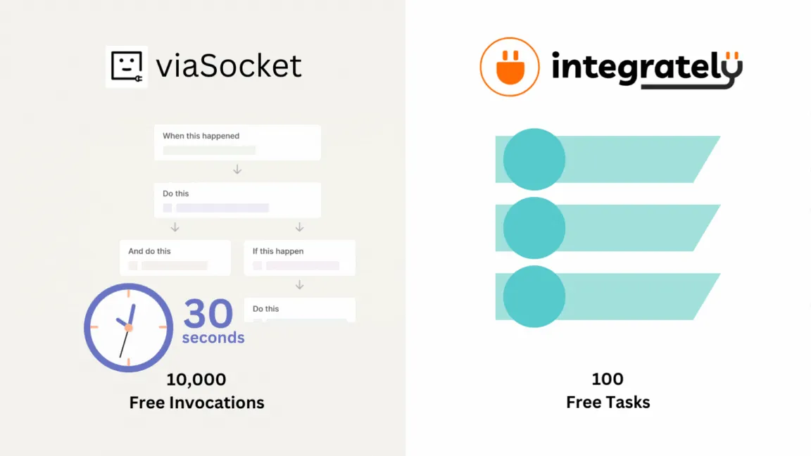 6. viaSocket counts 30 seconds of flow execution as one invocation, whereas Integrately counts each Action you set up as One Task