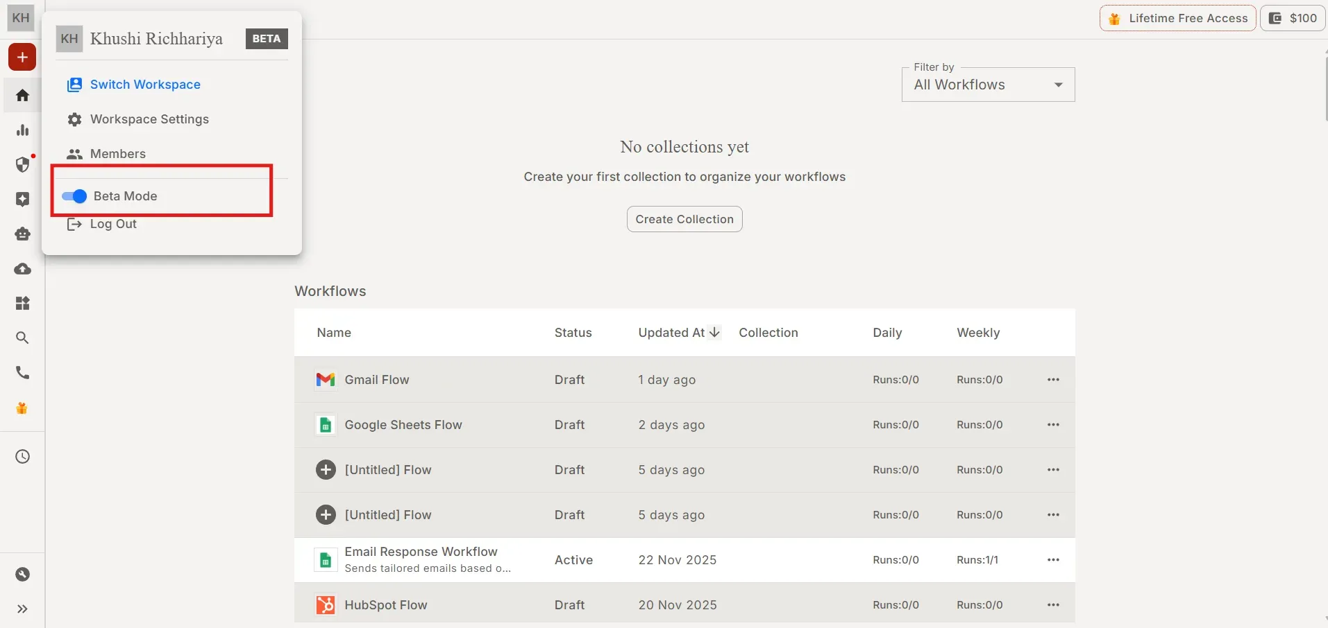 Beta Mode gives you early access to experimental and upcoming viaSocket features before they are officially released. This allows you to try new capabilities, share feedback, and stay ahead with the latest updates.