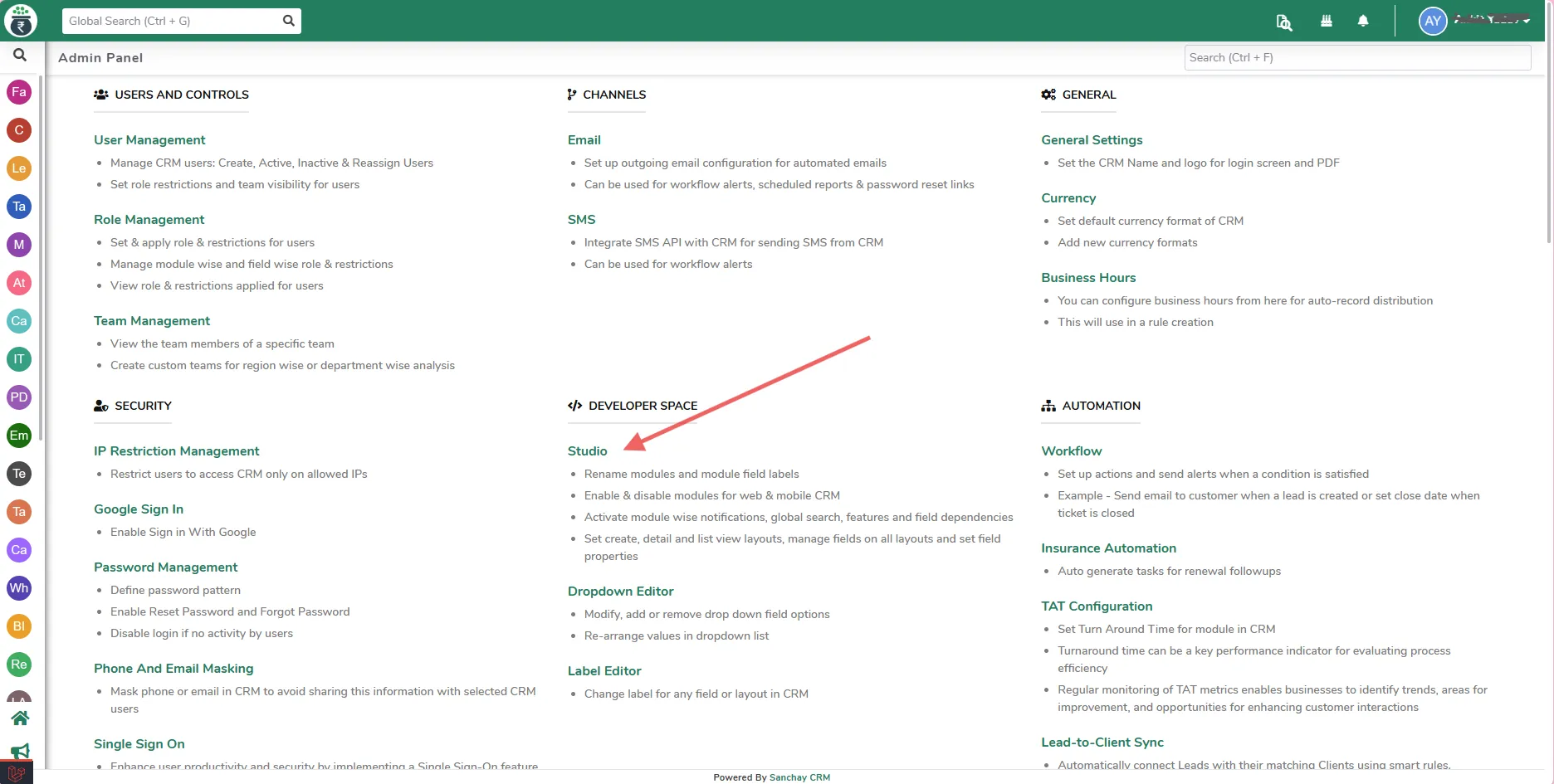 Within the Developer Space, select Studio.